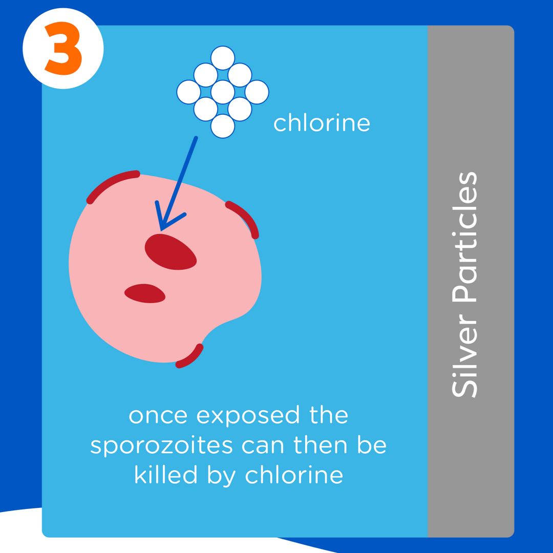 Unlike Chlorine, Silver can break down the cell membrane leaving the sporozoites unprotected.
