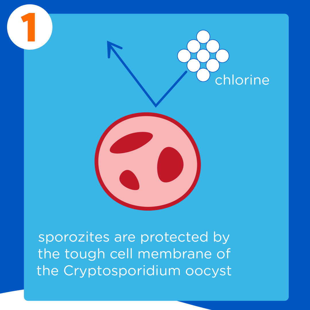 Chlorine found in pool water cannot kill Cryptosporidium because it is unable to break through the tough membrane that protects it.
