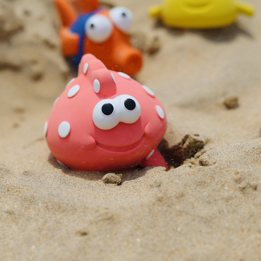 Our fish toys are the perfect bath toy for babies and toddlers! Encourage your little one to love the water, adding to your baby’s sensory experience during bath time or while making a splash in the pool with this brightly coloured, soft and squeezy teething toy.