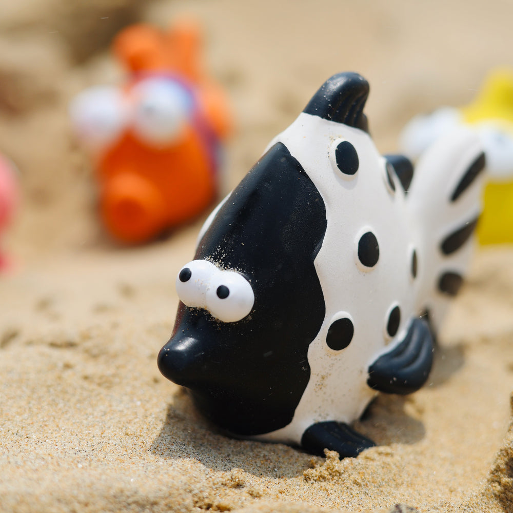 Our fish toys are the perfect bath toy for babies and toddlers! Encourage your little one to love the water, adding to your baby’s sensory experience during bath time or while making a splash in the pool with this brightly coloured, soft and squeezy teething toy.