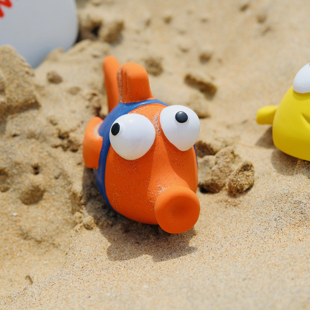 Our fish toys are the perfect bath toy for babies and toddlers! Encourage your little one to love the water, adding to your baby’s sensory experience during bath time or while making a splash in the pool with this brightly coloured, soft and squeezy teething toy.