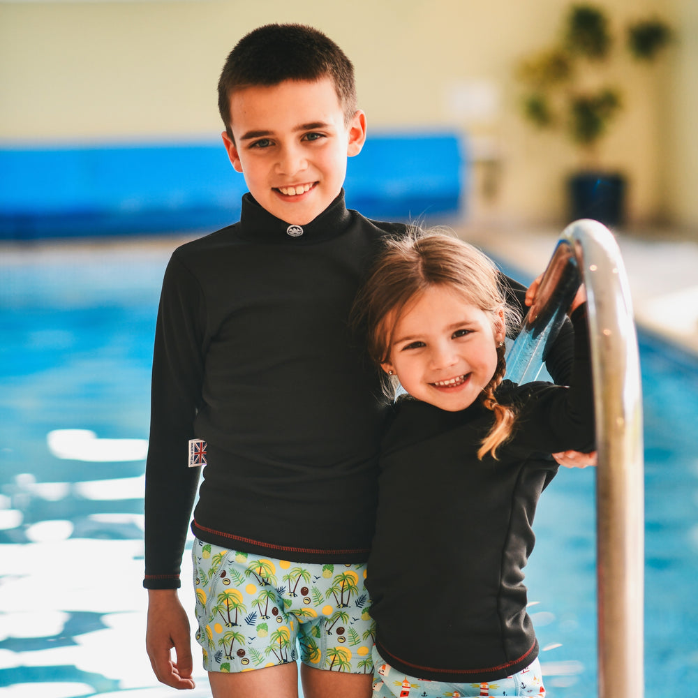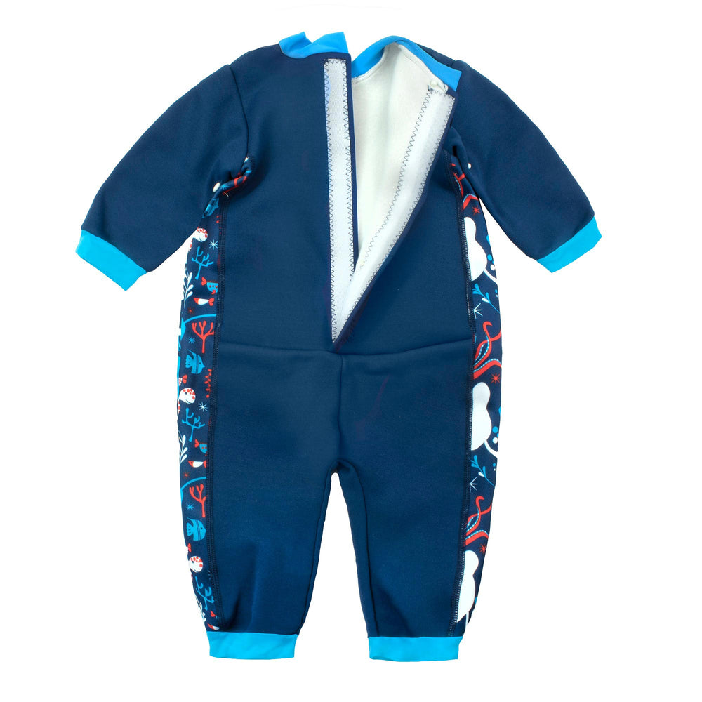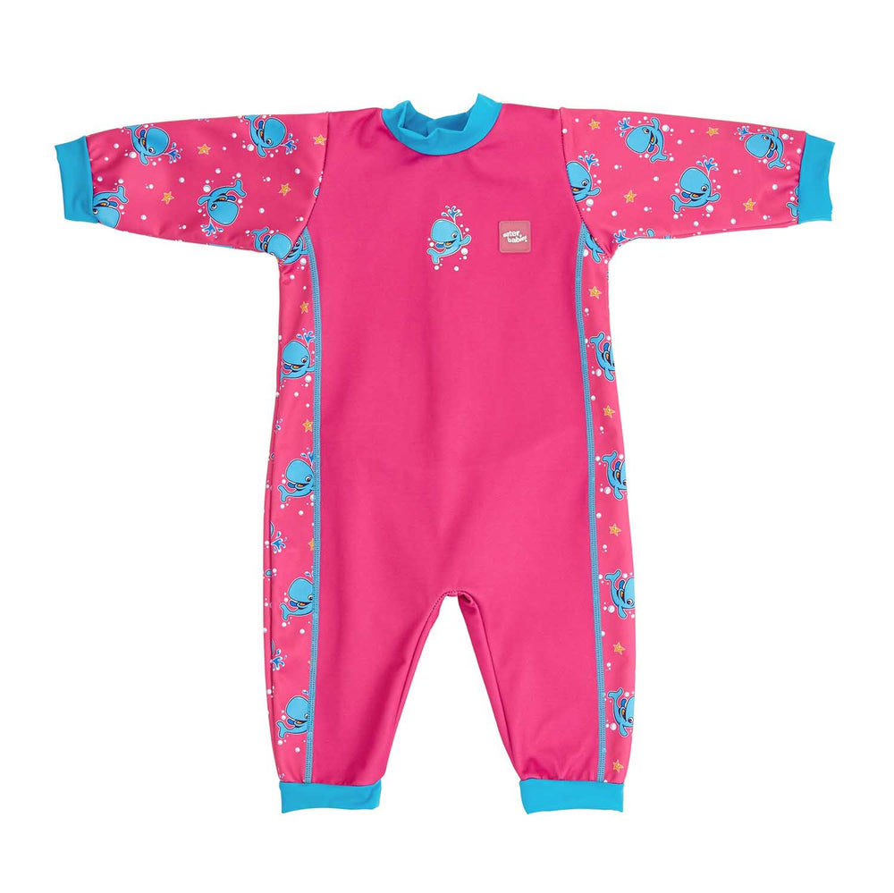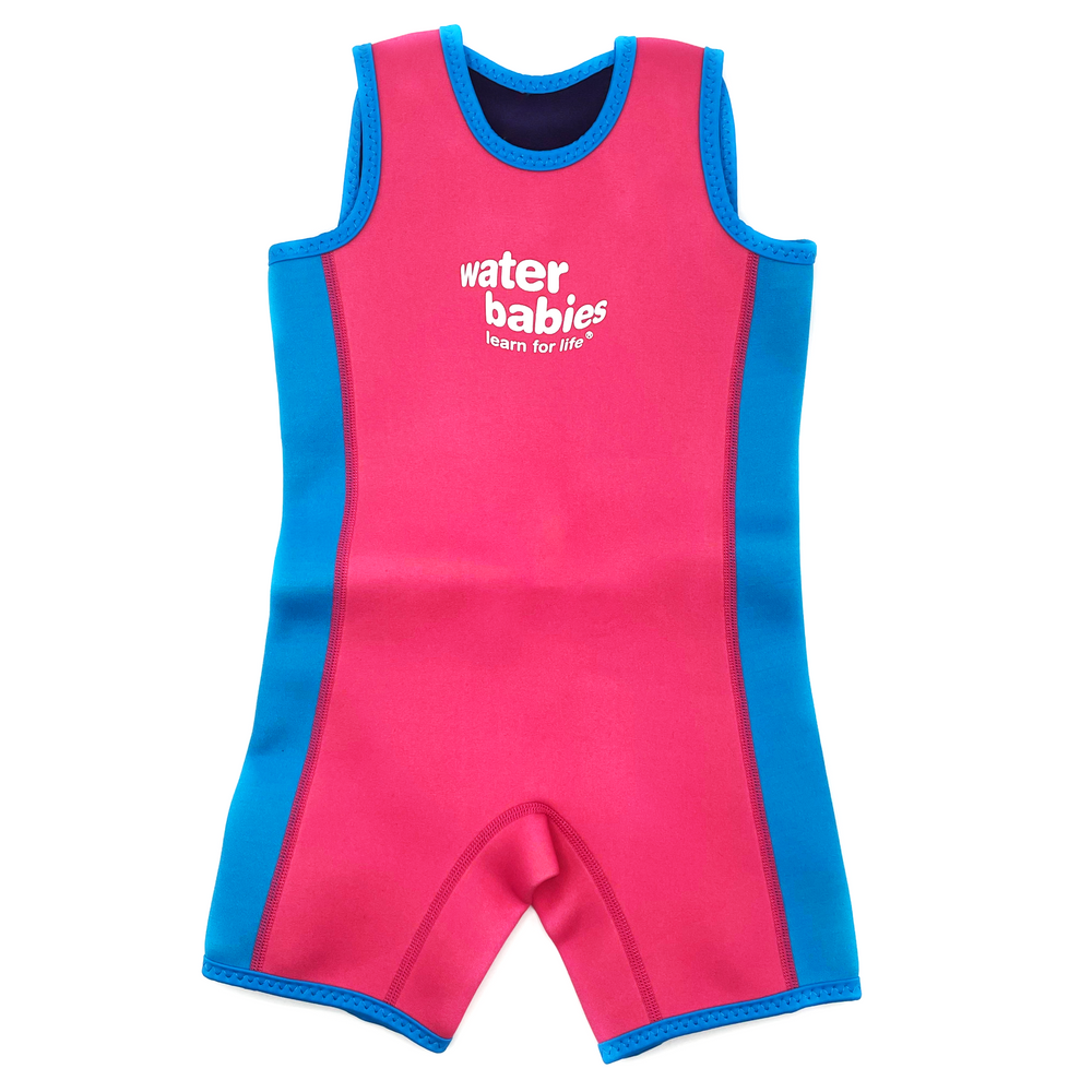 We keep our pools nice and warm for your little ones lessons, but occasionally small bodies need a bit of extra help. Our range of baby wetsuits are perfect for keeping your baby and toddler toasty in the pool, garden or on the beach. Remember holiday pools are often pretty chilly, so our wetsuits will ensure you have fun with no shivering.