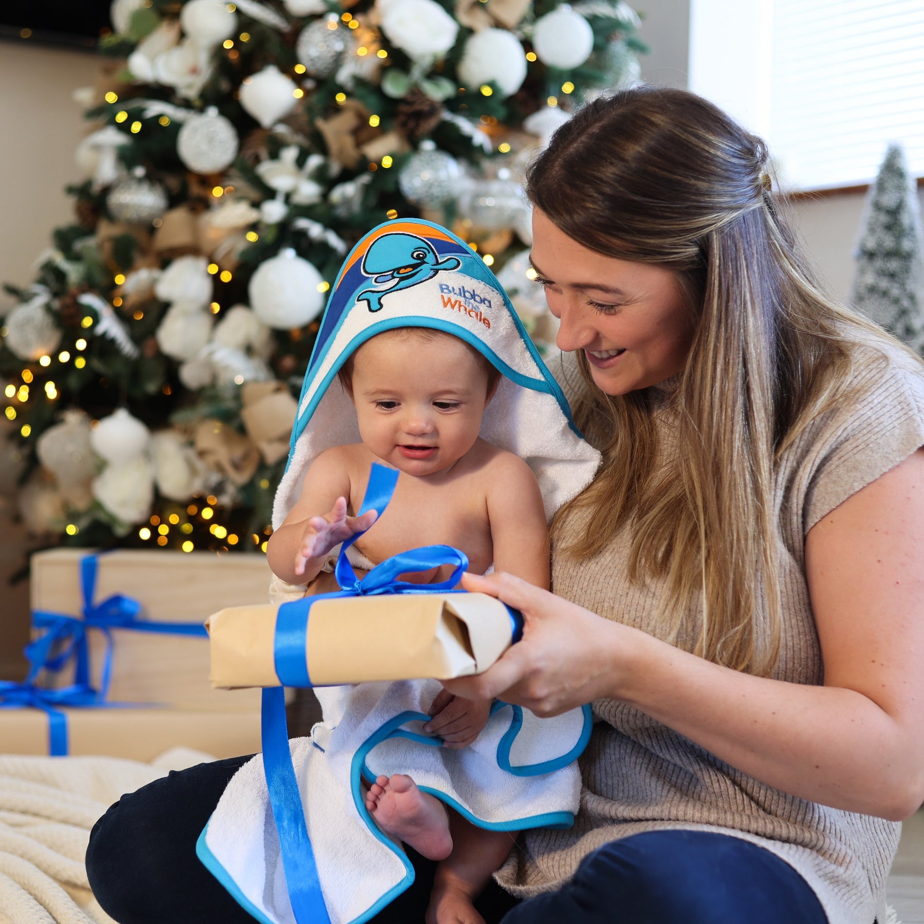Our lovely Water Babies Hooded Towel includes embroidered bubble spaces for all the badges earned during your little one's swimming lessons, as well as our friendly Bubba the Whale on the hood.